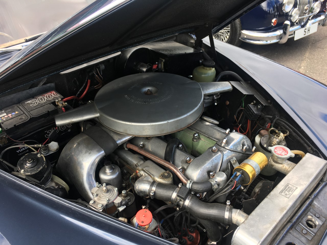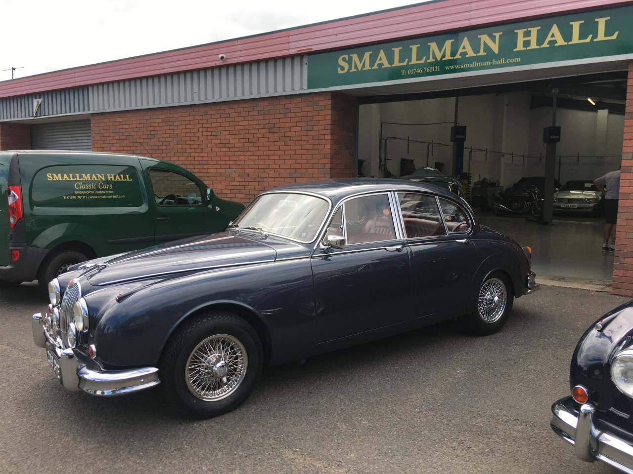 SOLD. This lovely Jaguar MK2 3.4 was manufactured on the 22nd October 1963. Still in its original colours of Opalescent Dark Blue with Red leather trim. An original RHD car that still retains the original engine but has been converted from automatic to a 5 speed manual gearbox. A good long distance touring car having been fitted with a 3.31 ratio diff, power steering, uprated brakes, aluminium radiator, electric cooling fan and uprated suspension. A very good history file comes with this car which includes the Heritage Certificate confirming the car still has its original registration number.